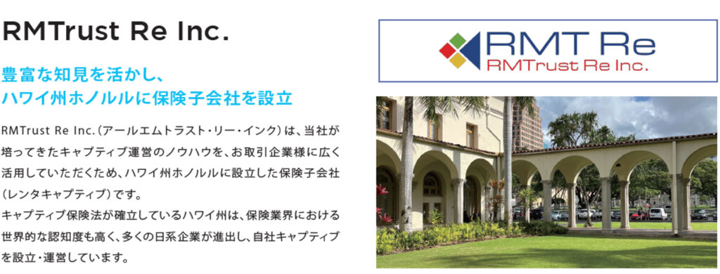 通常の保険会社では引き受けが難しいリスクに対応した保険商品の組成、キャプティブへの