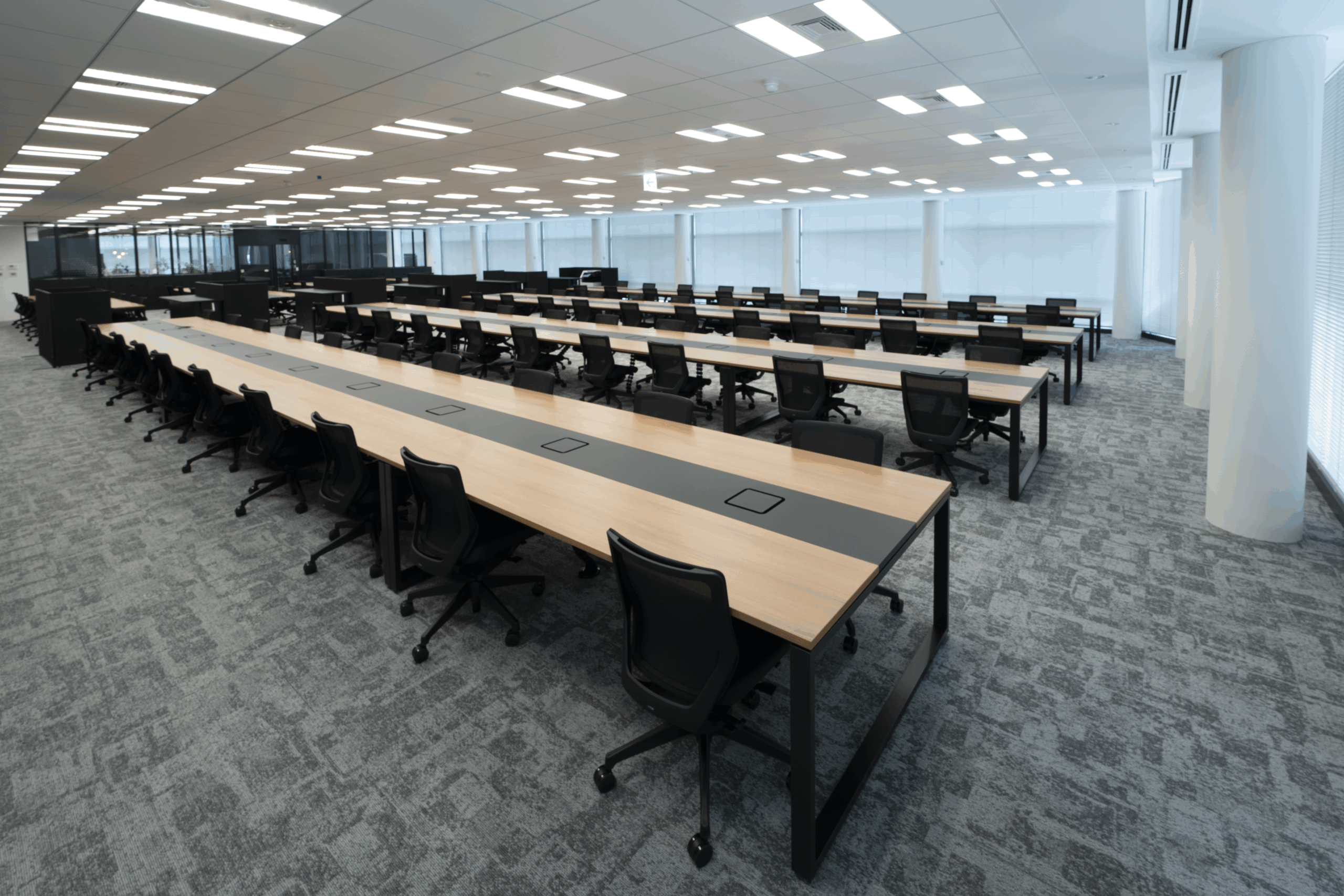 広々としたワークスペースは、明るい自然光が差し込む心地よい空間。