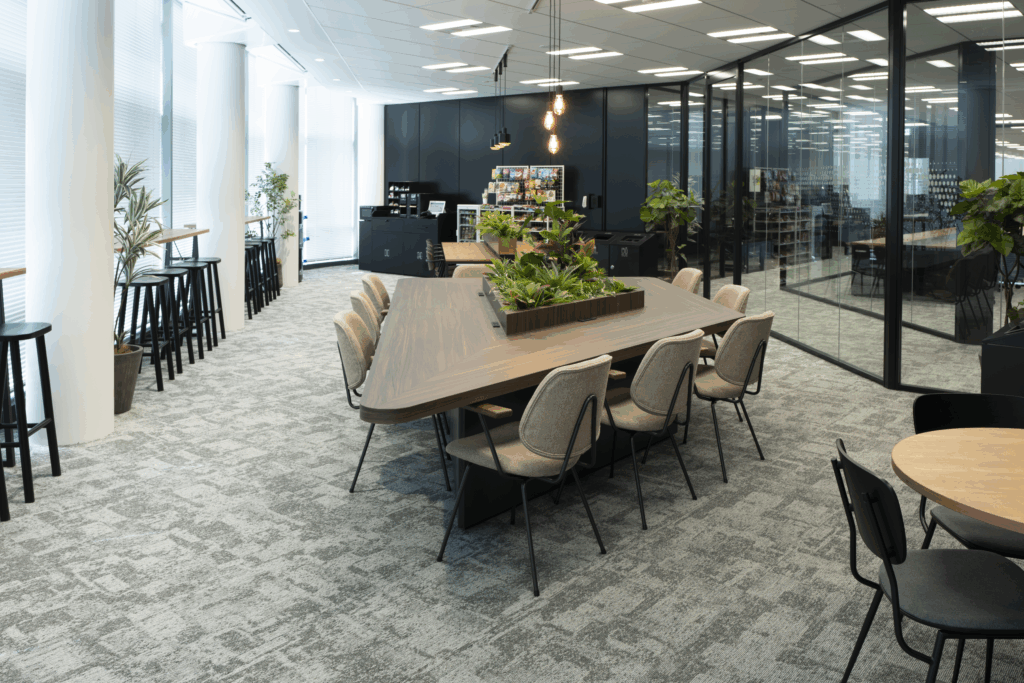 用途に応じて使い分けられる環境を整えており、少人数での打ち合わせから社内外のミーティングまで、幅広いシーンに対応可能です。モニターやオンライン会議設備も充実しており、快適なコミュニケーション環境を提供しています。